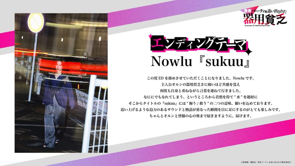 エンディングテーマはNowlu「sukuu」に決定!